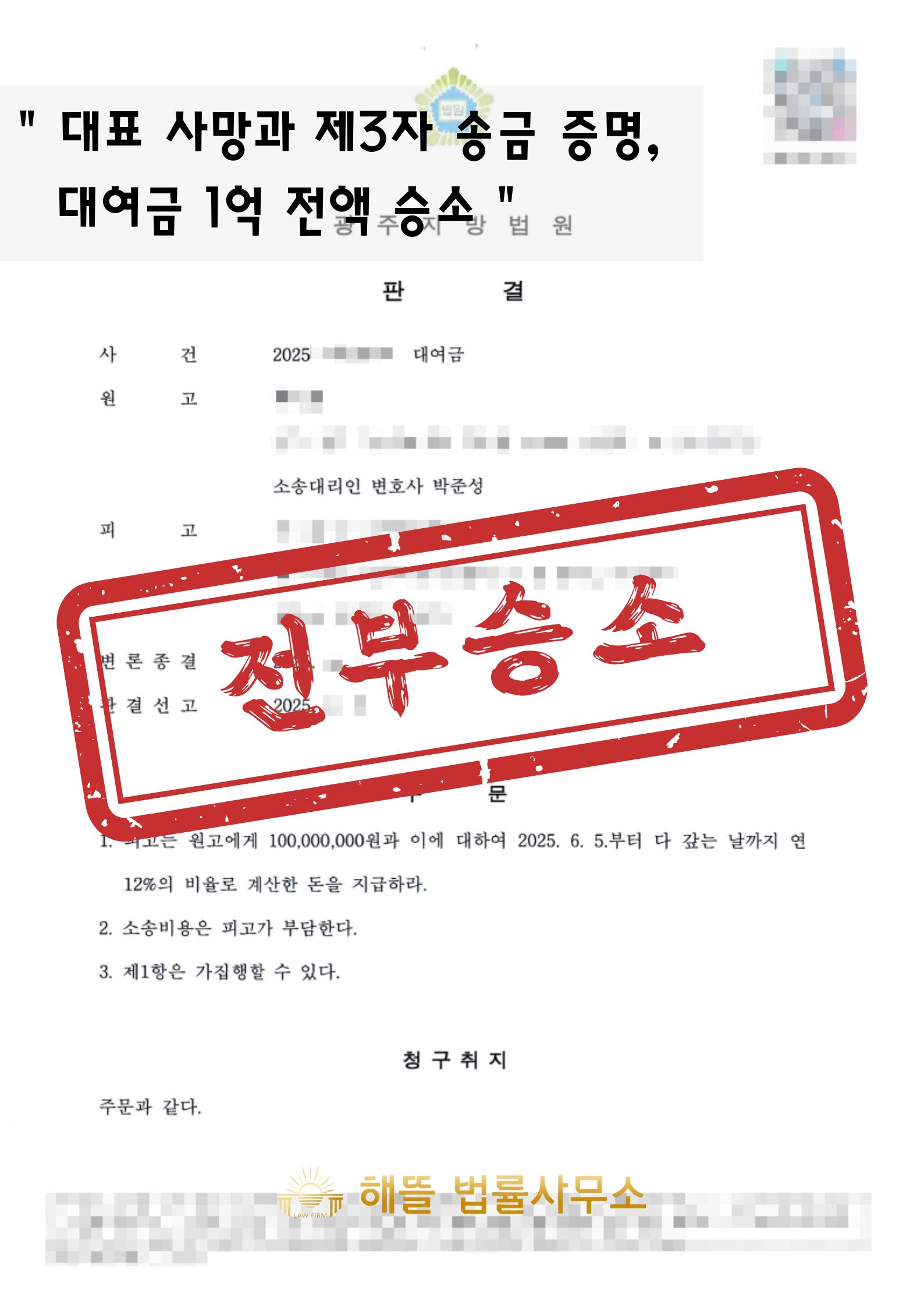 법인 상대로 한 대여금 반환 청구 전부 승소